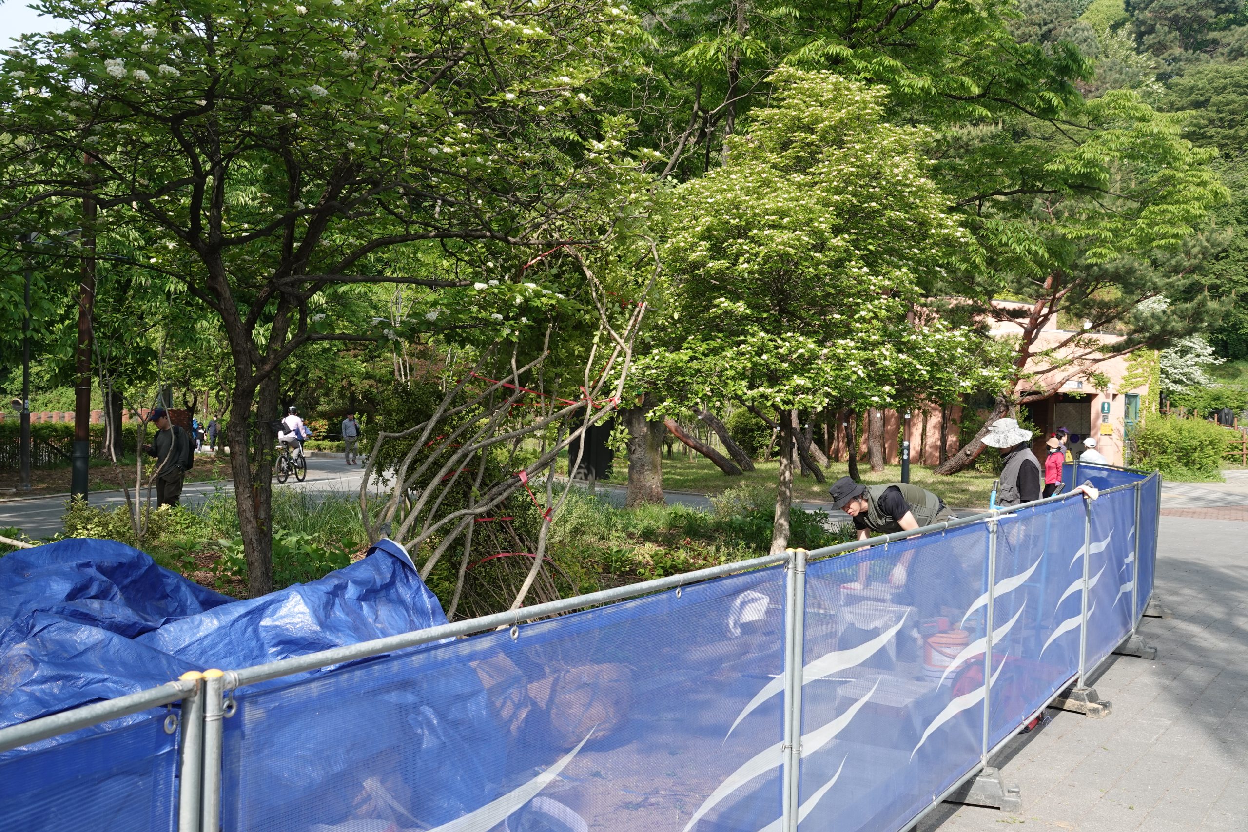 기존의 큰 나무 아래에 은신처와 다른 나무로의 길목 역할을 할 가지가 많고 잎이 빽뺵한 다양한 크기의 덤불이 놓입니다.