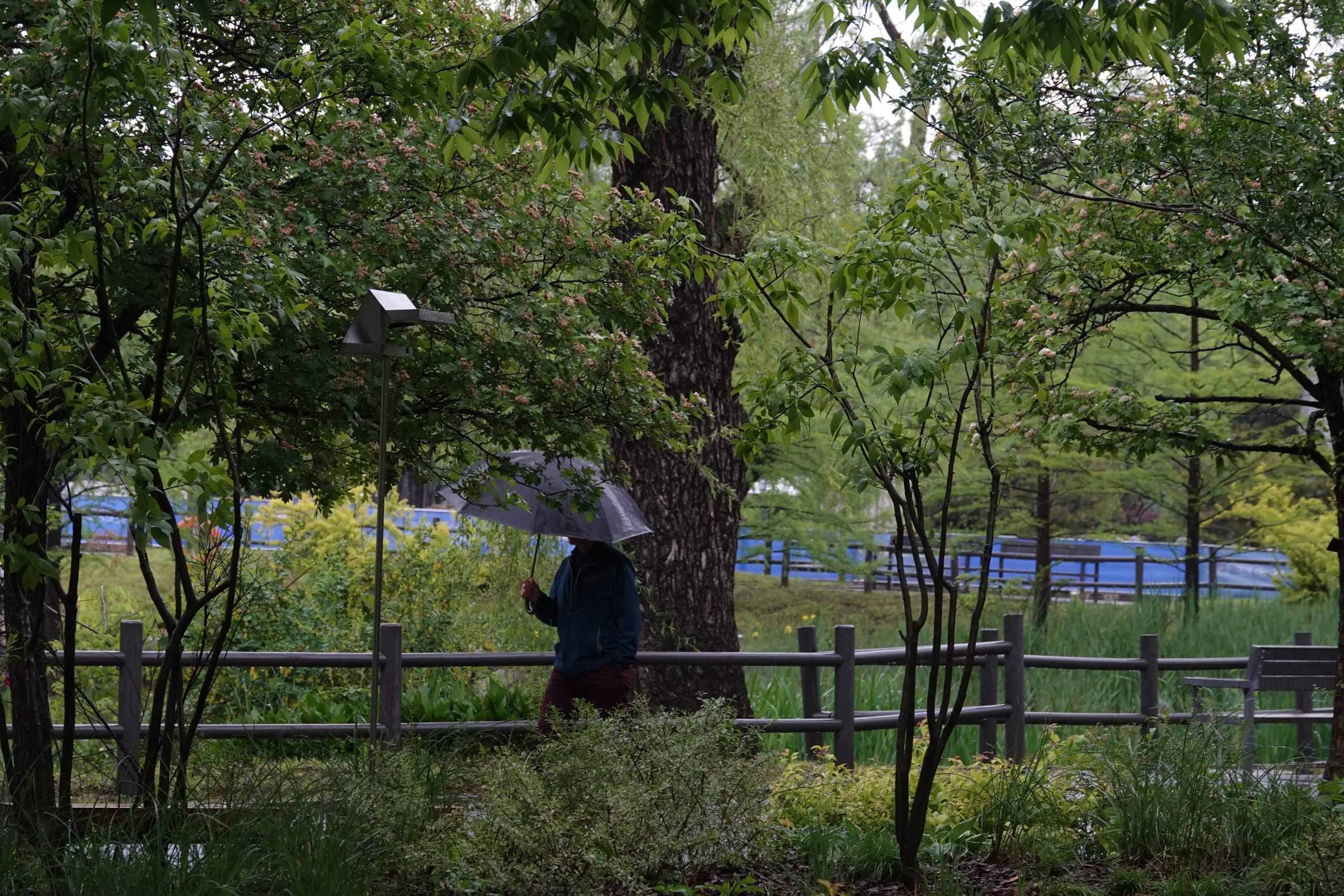 사람과 새, 작은 생물들은 가까이에서 녹지의 경계를 함께 공유하며 서로를 존중하며 머무릅니다.