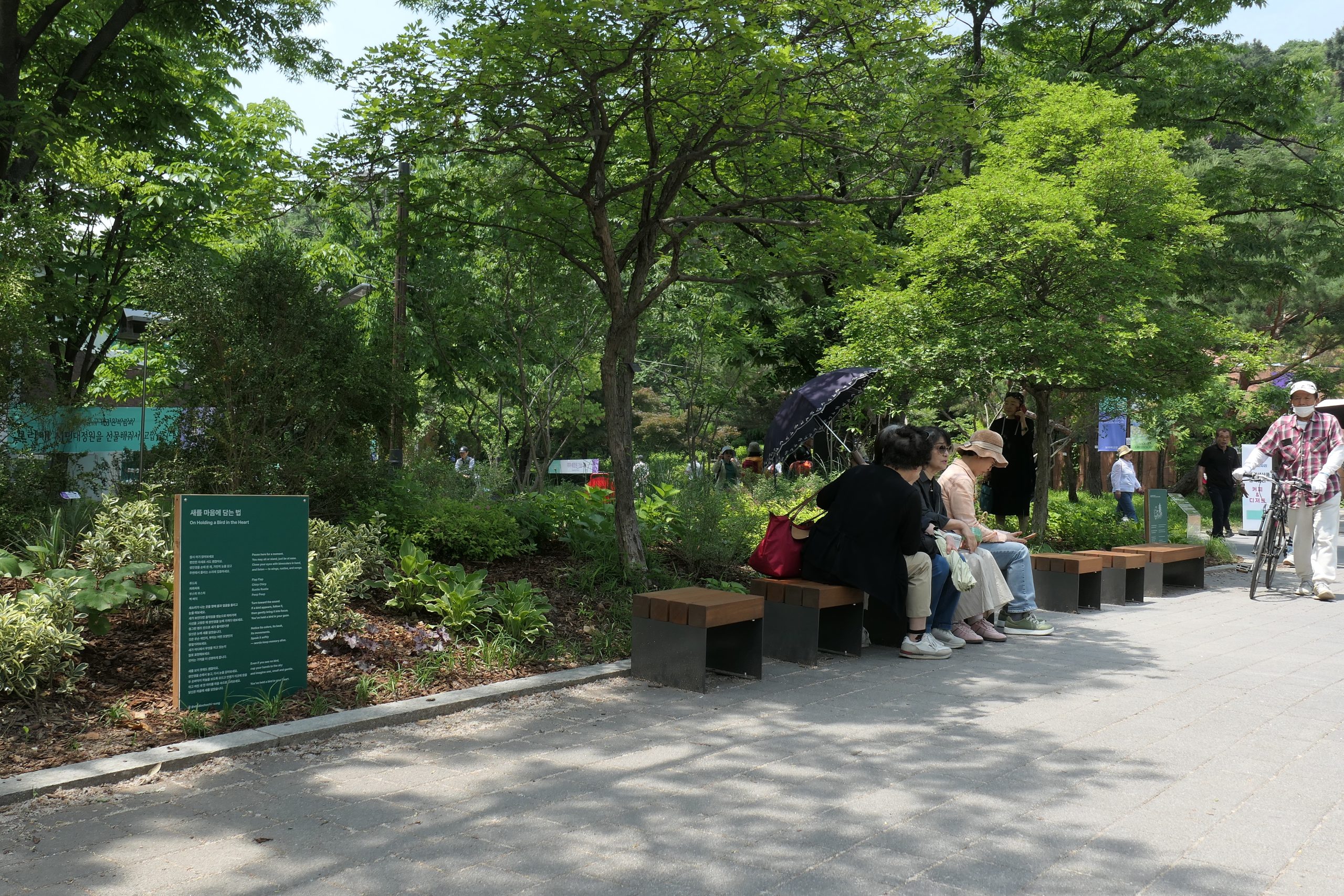 녹지의 가장자리에는 낮은 벤치를 여러개 두어 지나가던 이들이 호수를 바라보며 쉬어갈 수 있도록 합니다.